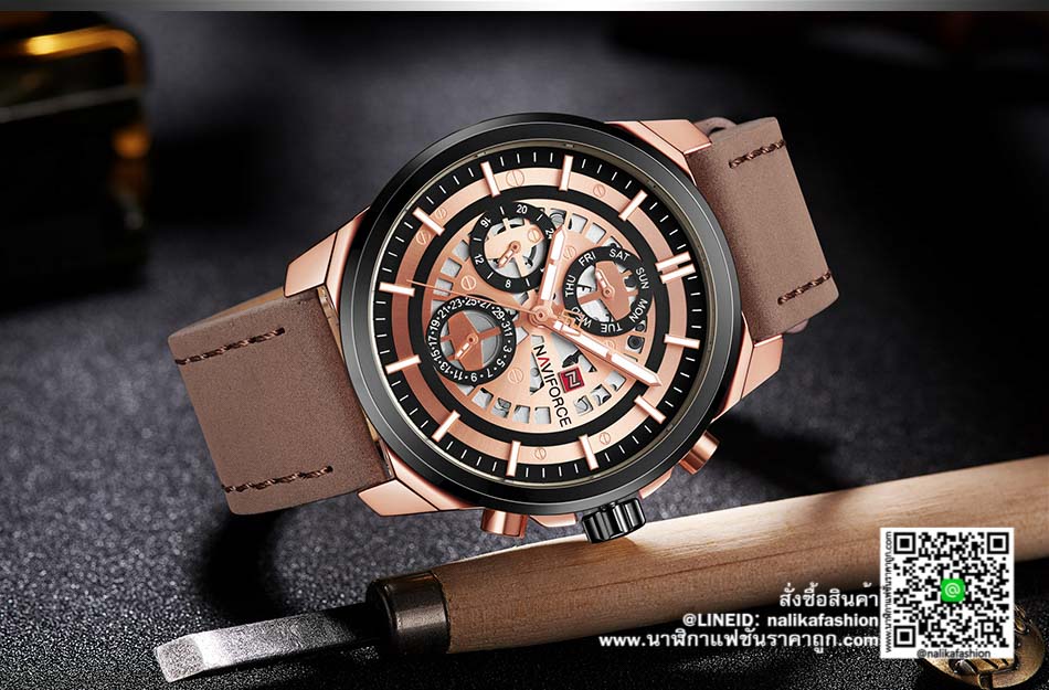 1. LindID: @nalikafashionนาฬิกา Naviforce สายหนังผู้ชาย NF9129 สีน้ำตาลพิ้งโกล รุ่นขายดี